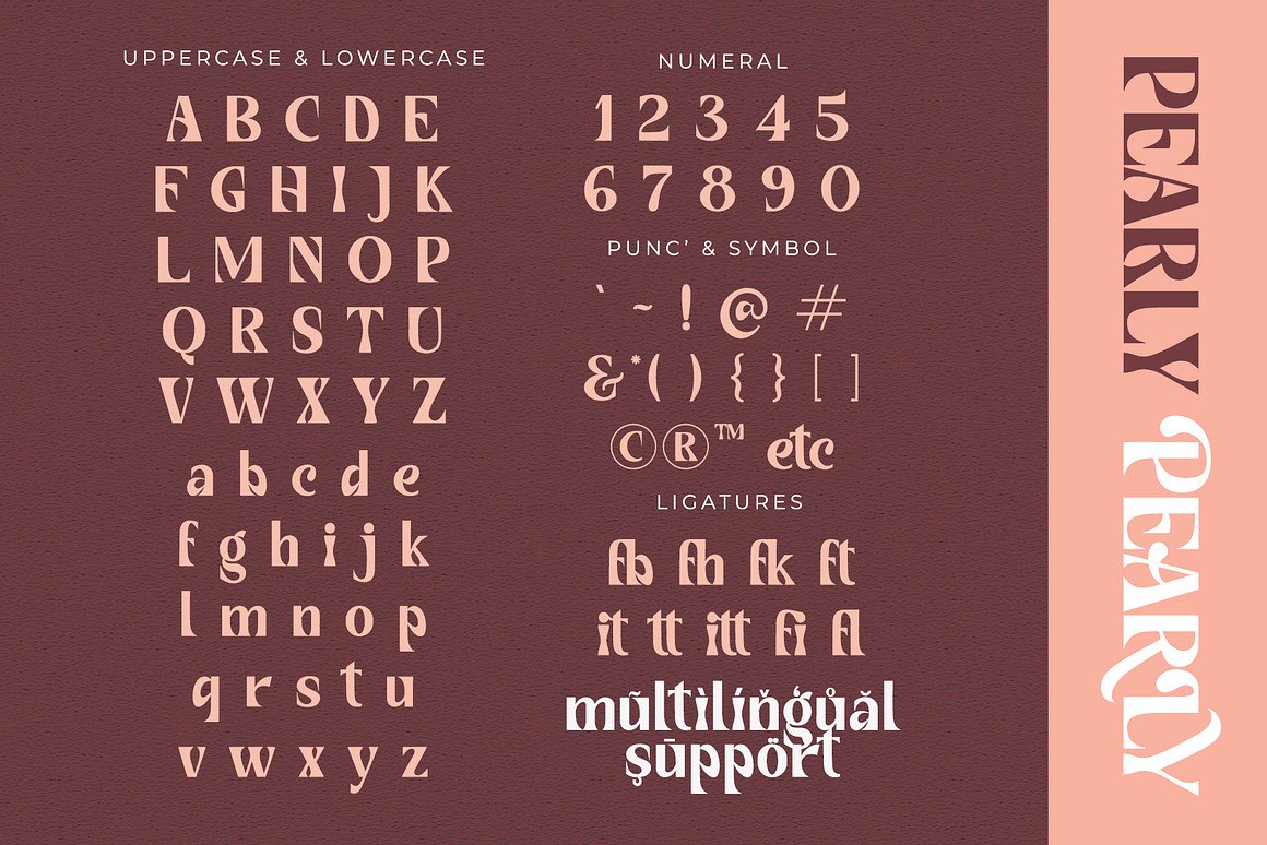 Pearly is modern serif font with thick and solid style. It has modern and vintage look.